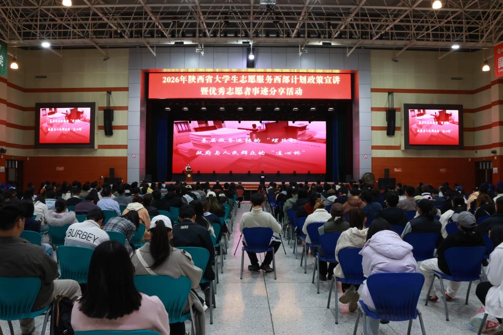 3月26日,2026年陕西省大学生志愿服务西部计划政策宣讲暨优秀志愿者事迹分享活动在西北农林科技大学北绣活动中心举行。我校团委组织40余名应届毕业生前往参会,与来自兄弟高校的400余名师生共同聆听志愿者故事、了解西部计划政策,在榜样力量中进一步坚定服务基层、投身西部的理想信念。